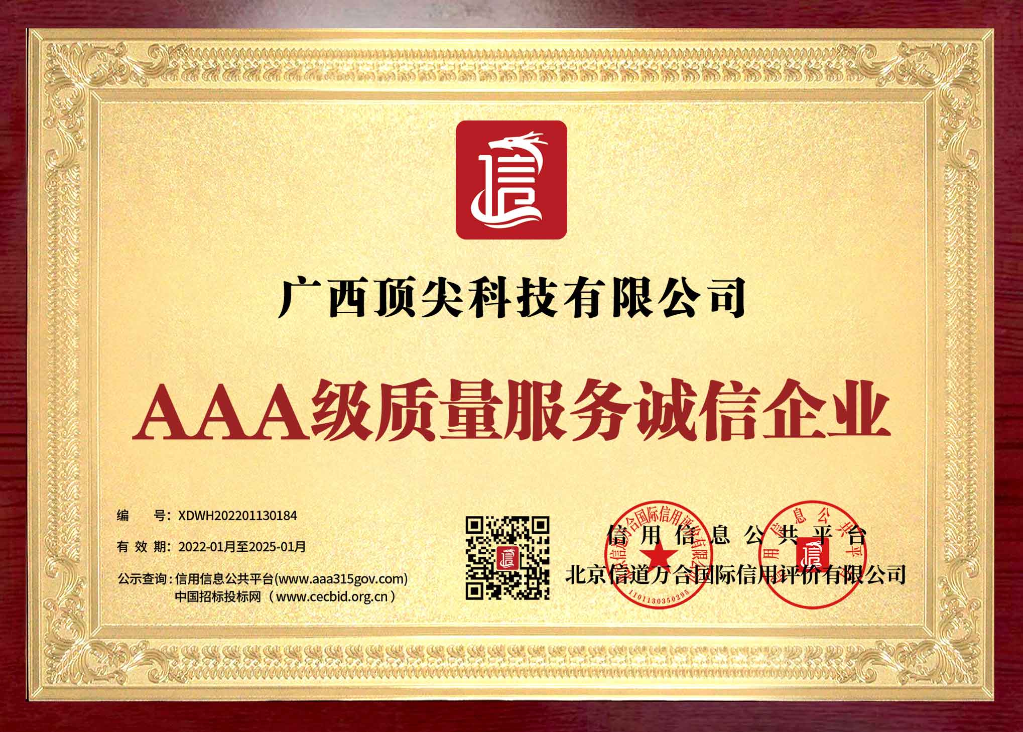 AAA级质量服务诚信企业